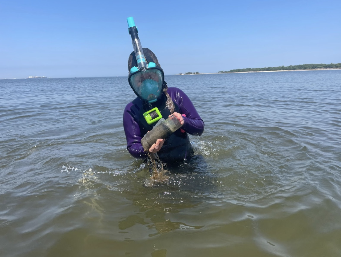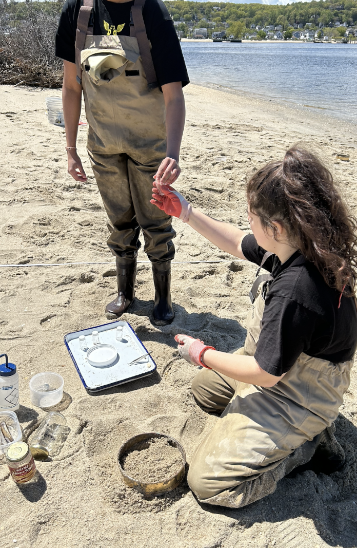- Student Isabella identifying organisms in Sandy Hook